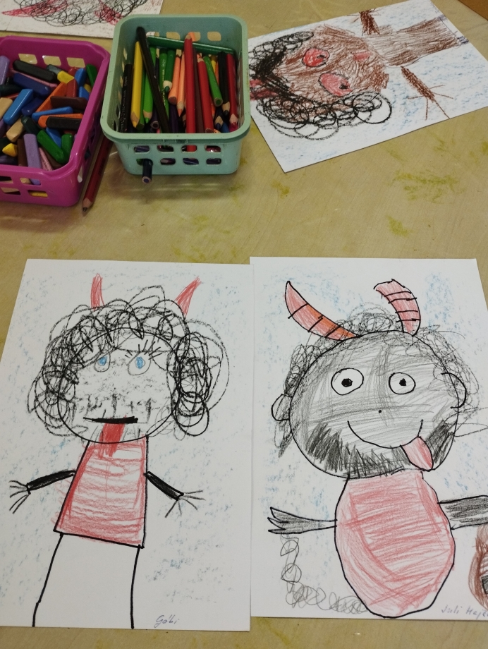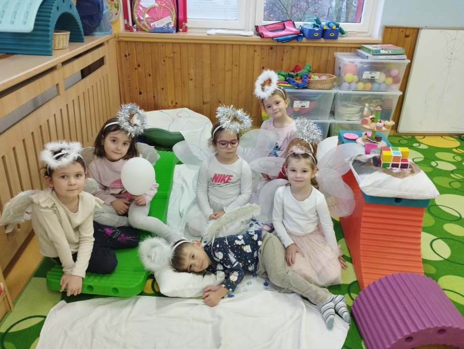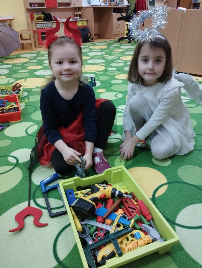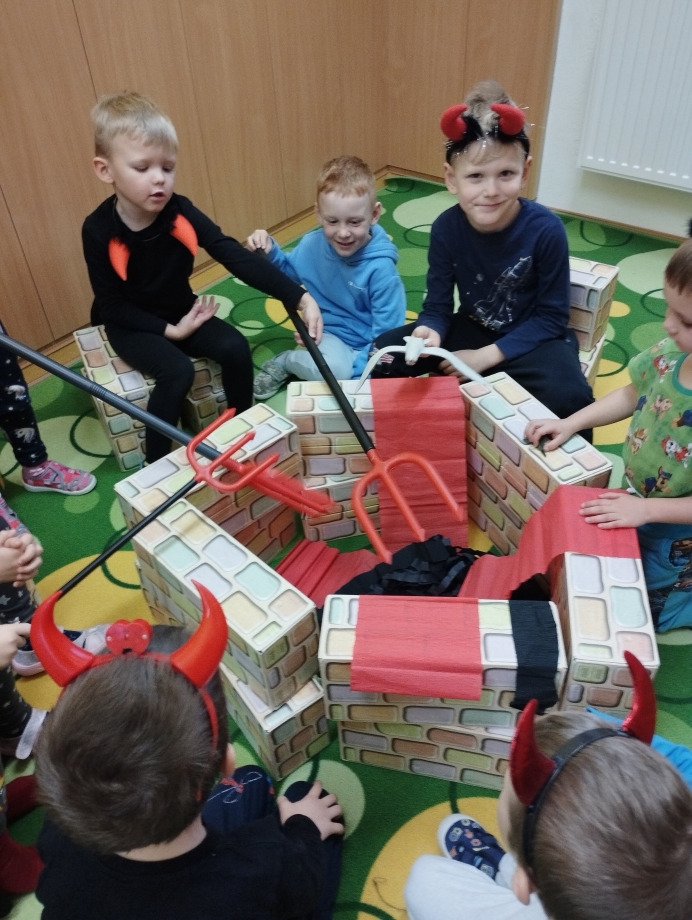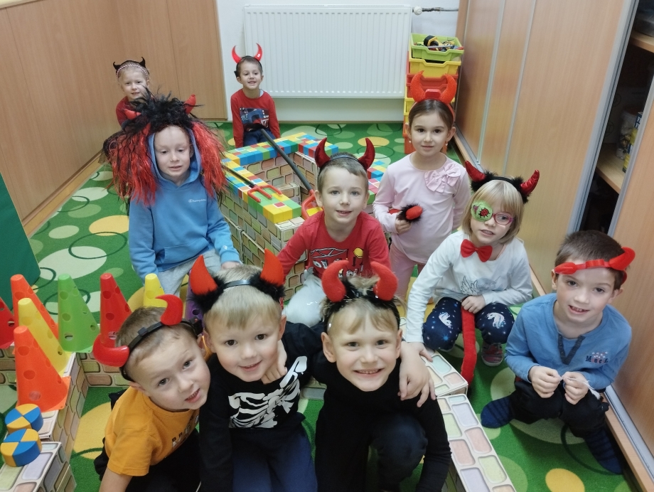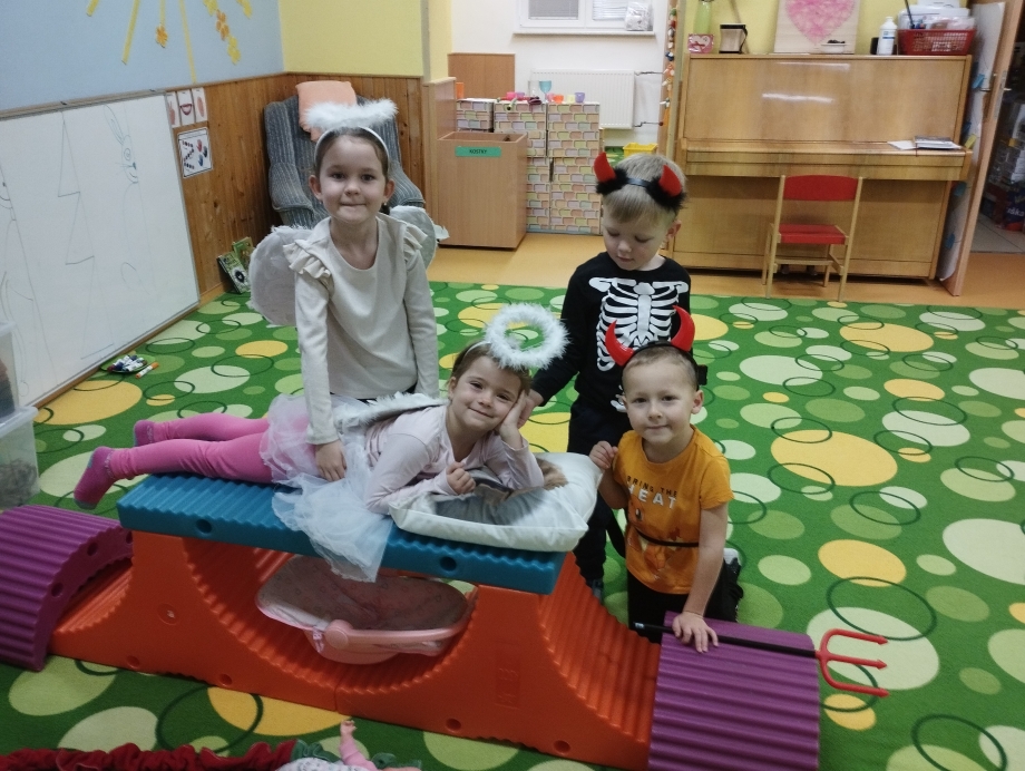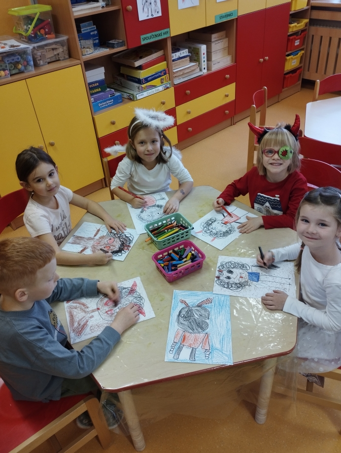 Čertíků jsme tentokrát měli ve školce opravdu hodně, ale andílků bylo snad ještě více. V pekle se převážně vařilo v kotli, v nebi si andílci tvořili, hráli si a zpívali.
