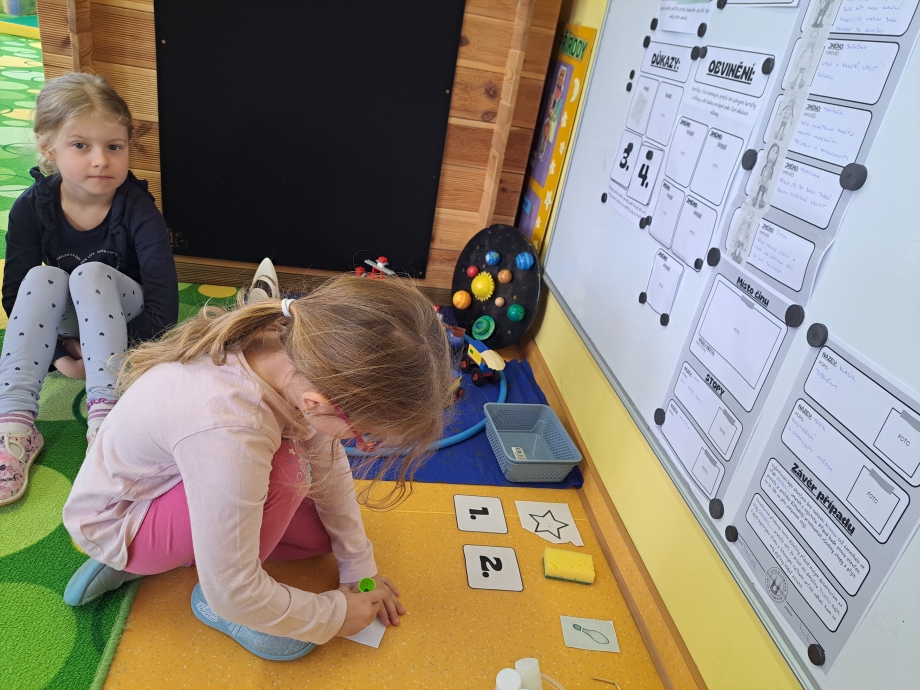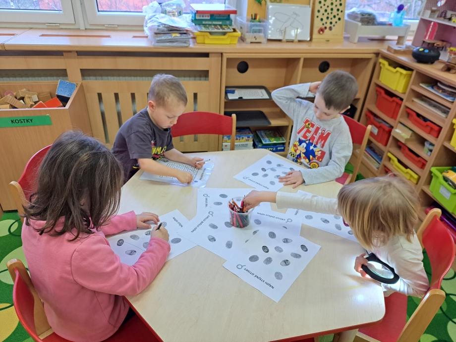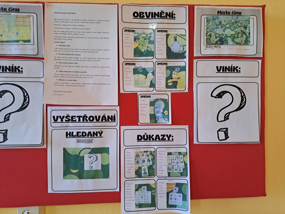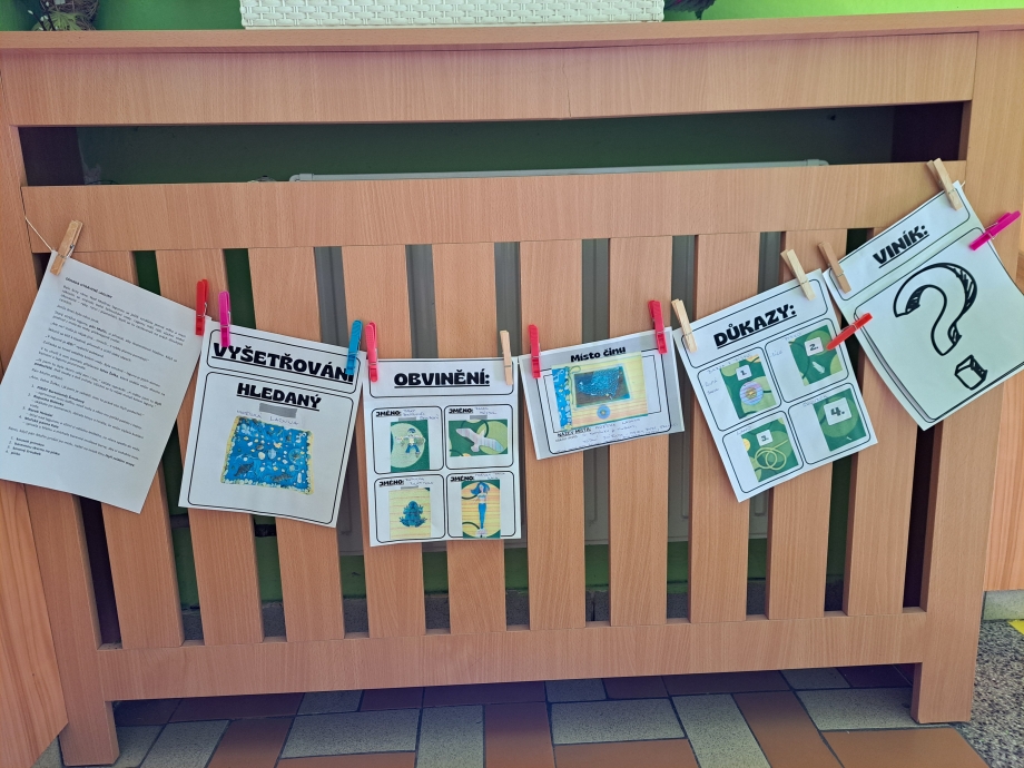 Během uplynulého týdne se děti proměnily v malé detektivy a s nadšením řešily různé záhadné případy. Pátraly po stopách, hledaly důkazy a snažily se odhalit, kdo za jednotlivými „záhadami“ stojí. Učily se pozorně vnímat, přemýšlet a spojovat jednotlivé indicie.