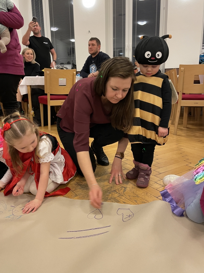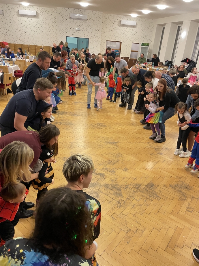 Výtečně jsme se občerstvovali a samozřejmě proběhlo nezbytné losování o ceny. Ovšem ani poté, co agentura Tomino ukončila svou produkci, naše plesání neskončilo. Ještě dlouho jsme se družili a povídali si všichni společně – děti, rodiče, zaměstnankyně školky. Bylo to moc fajn.
