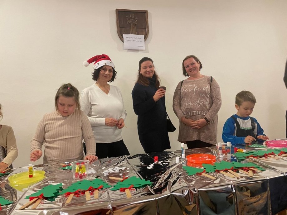 Po programu se paní učitelky Jana a Helena přesunuly do kulturního domu, kde pro děti připravily vánoční dílničky. Tam si každý mohl vytvořit vlastní vánoční zápich ve tvaru stromečku, který si děti s hrdostí odnesly domů jako milou vzpomínku na společně prožité chvíle.