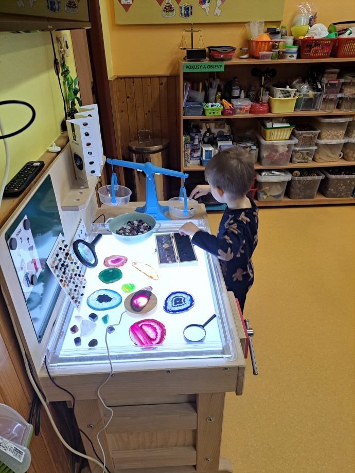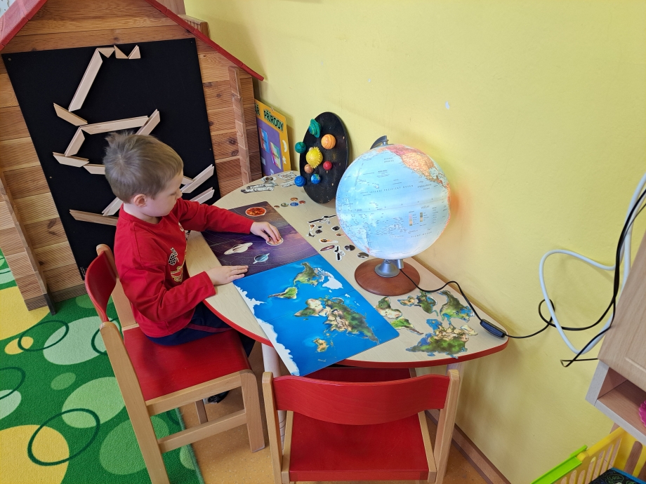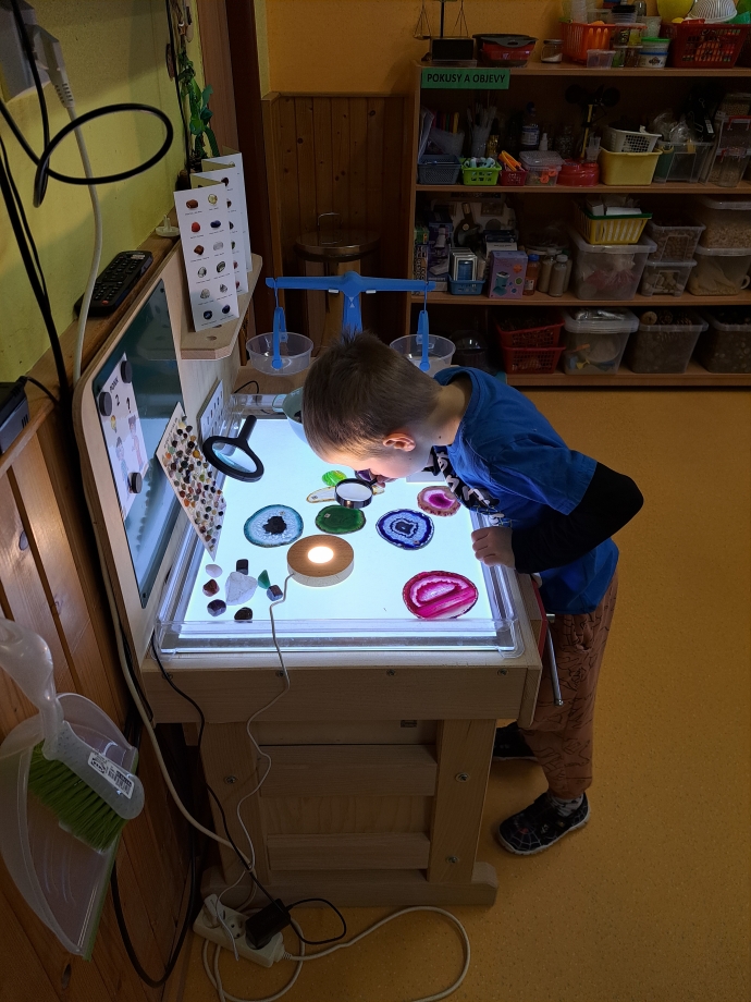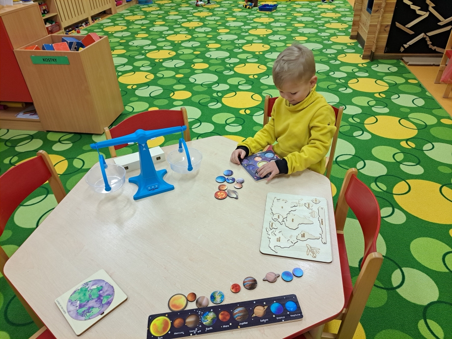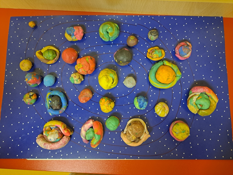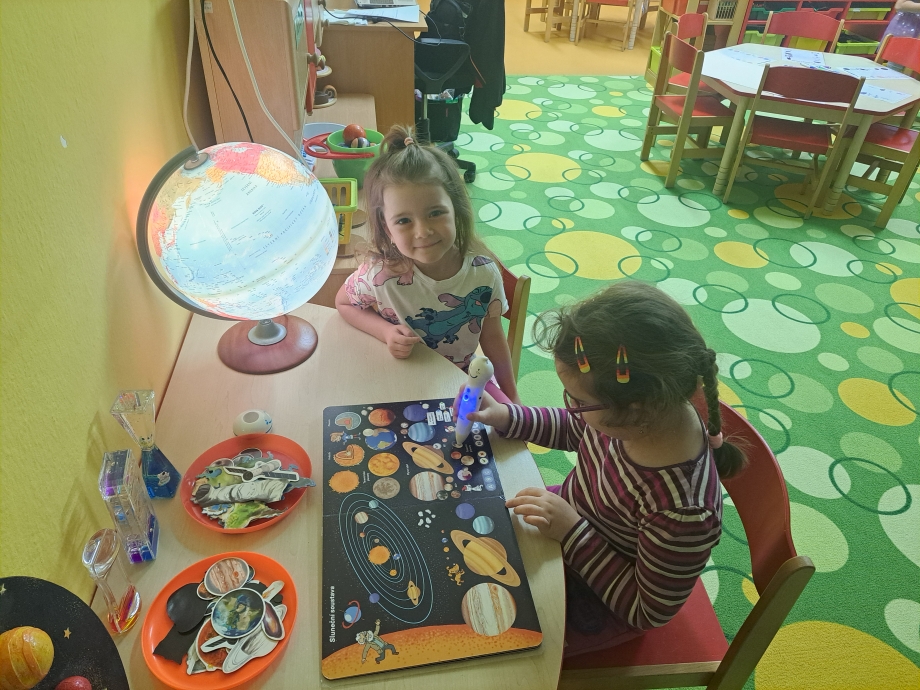 Během naší cesty jsme poznávali jednotlivé planety, jejich povrch i zajímavosti. Pomocí lupy jsme zkoumali kameny, horniny a minerály a objevovali jejich rozmanitost. Zvláštní pozornost jsme věnovali planetě Zemi. Seznamovali jsme se s tím, z jakých vrstev se skládá – poznali jsme zemské jádro, plášť i kůru – a společně jsme si představovali, co by se stalo, kdyby zemské jádro vyhaslo. Přemýšleli jsme také nad tím, jak by se změnil život na Zemi, kdyby naše planeta ztratila svou oběžnou dráhu a přiblížila se ke Slunci.