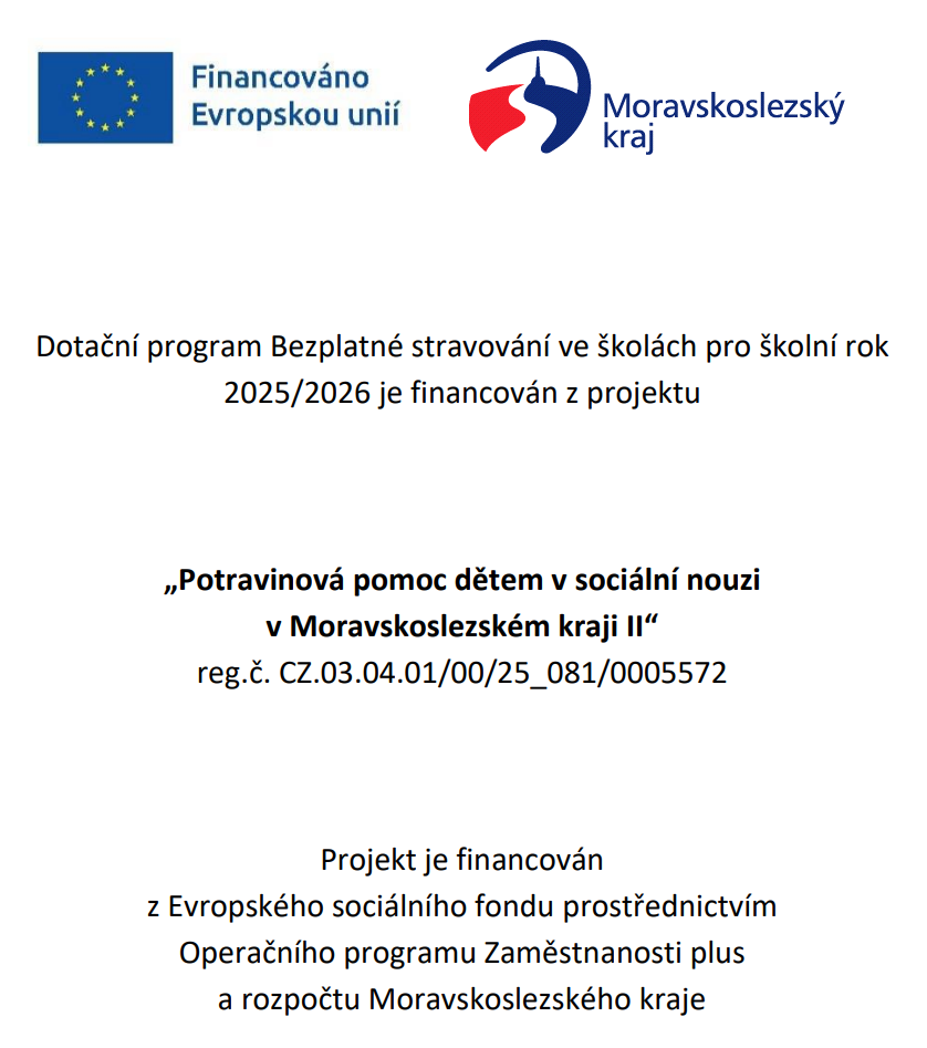 V pátek 14. 4. 2023 proběhne od 13:00 do 17:00 hodin ZÁPIS PŘEDŠKOLNÍCH DĚTÍ do 1. třídy. Podrobné informace získáte na t.č. 595 058 257.